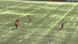 Al principio, exigir control del balón al recibirlo y luego, según el nivel de habilidad, fomentar el juego directo. También es importante enfatizar el movimiento adecuado de los jugadores sin el balón, dependiendo de qué jugador reciba el pase.